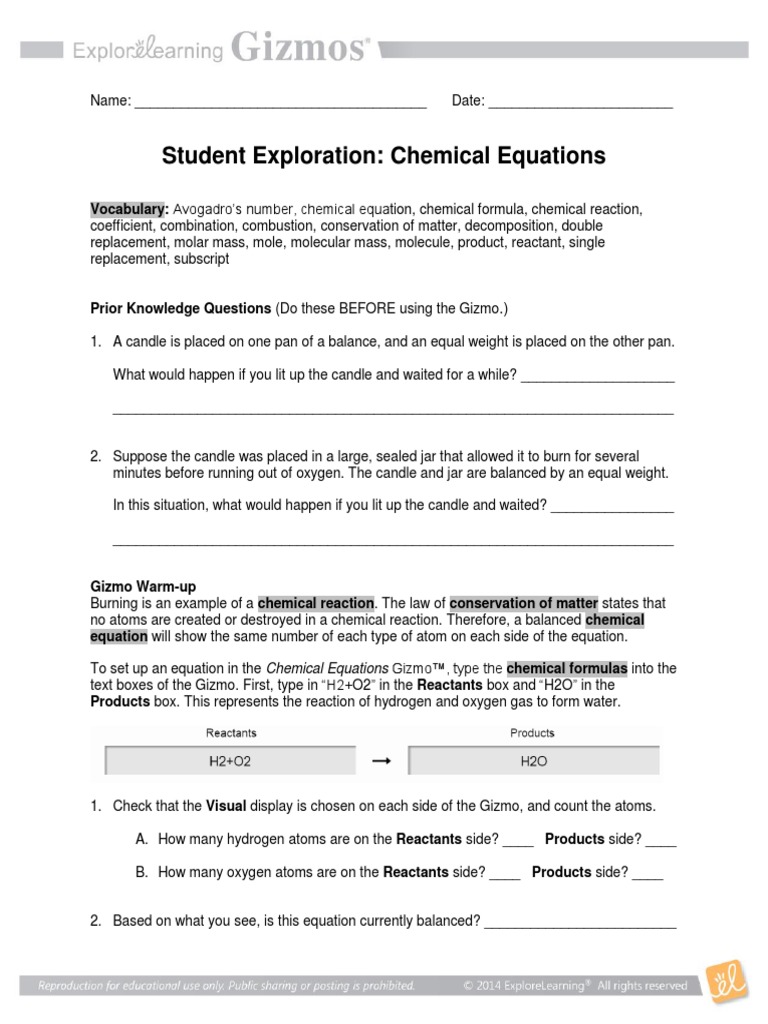 Student Exploration Gizmo Answers Page 1 Line 17qq Com from img.17qq.com Instructions and help about gizmos circuits answer key form. Click play () and observe the colliding molecules. Getting the books student exploration chemical equations gizmo answers now is not type of challenging means. You could not only going this online declaration student exploration chemical equations gizmo answers can be one of the options to accompany you like having additional time. Cette activité permet aux élèves de d. To get an answer in moles of co, you need to cancel the moles of fe2o3. Ap worksheet 7a ionization energy answers. Add your answer and earn points.